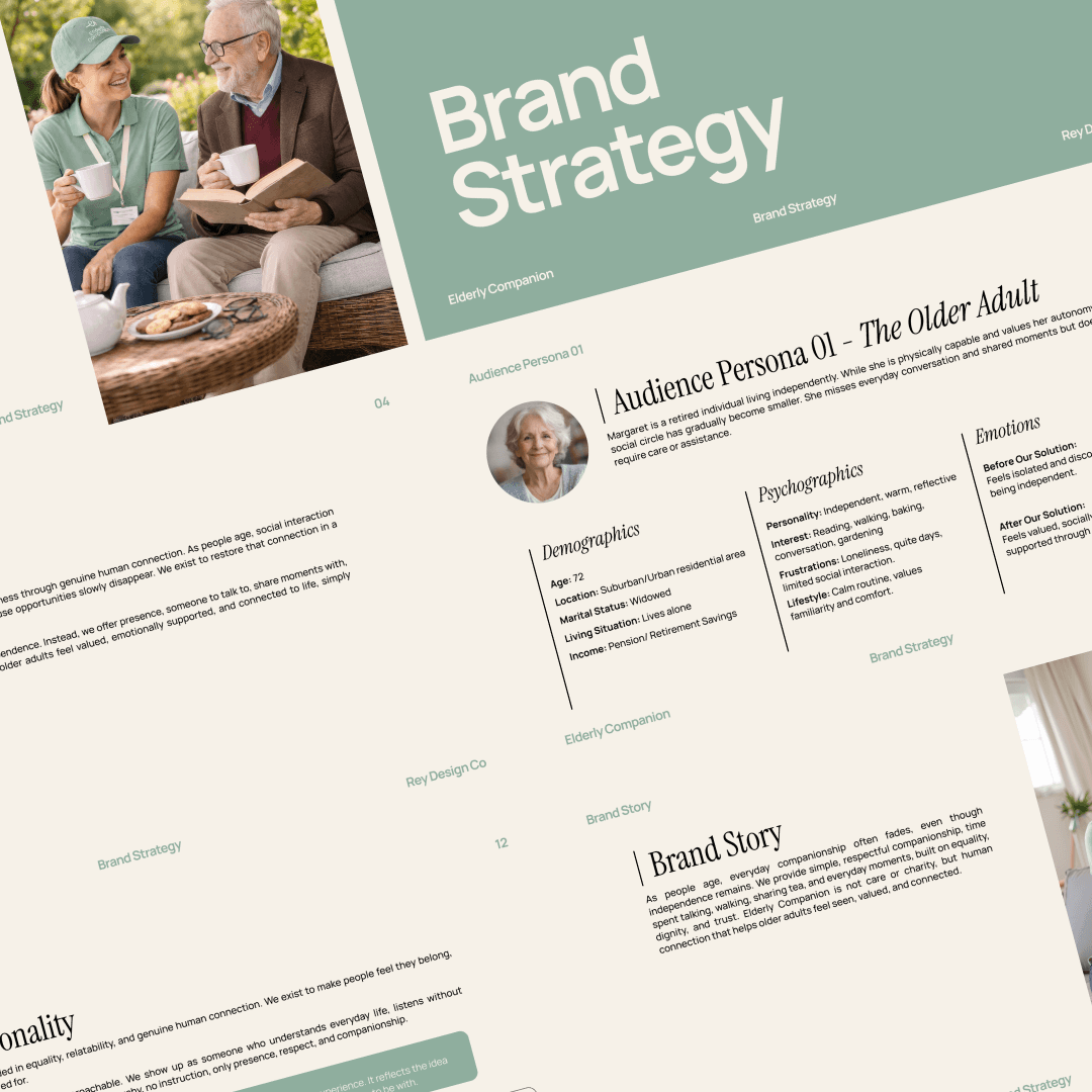 Brand strategy is the foundation behind your brand. It defines your positioning, messaging, audience, values, and direction. It guides every design decision, so your brand feels intentional, cohesive, and aligned, not random or disconnected.